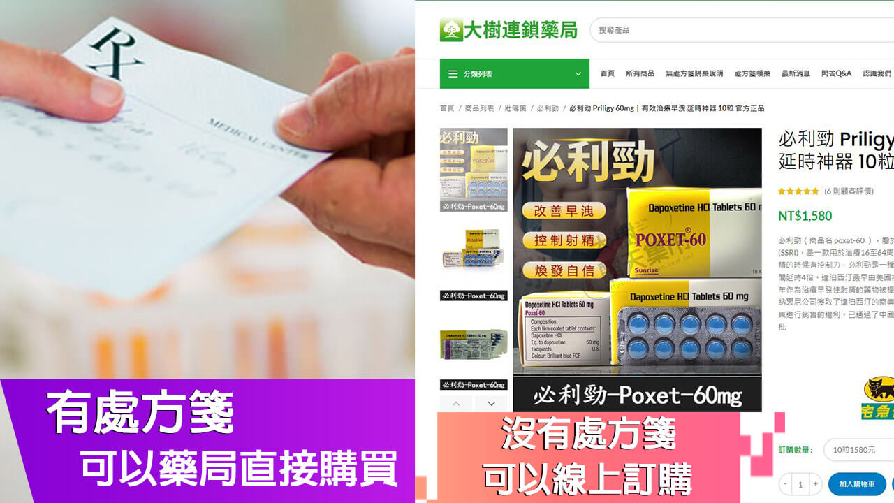 在當今社會,隨著醫療技術的進步與人們對性健康問題的重視,越來越多的男性選擇通過藥物治療來解決早洩問題。藥物治療因其方便、快速且效果顯著,成為目前治療早洩的主流方式。尤其是像必利勁(Dapoxetine)這類經過臨床驗證的專用藥物,可以有效延長射精時間,改善性行為體驗,同時副作用輕微且易於控制。此外,針對龜頭敏感度高的患者,局部使用麻醉噴霧也是一種安全有效的選擇。藥物治療能快速見效,且適用於大多數患者,讓男性在繁忙的現代生活中能夠以簡單直接的方式重拾自信,因此受到廣泛青睞與推薦。那麼該如何購買必利勁呢?接著往下看: